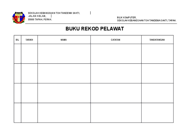 Definisi Buku Pelawat Buku pelawat ialah kertas untuk pengunjung mengakui lawatan ke tapak kejadian dan meninggalkan butir butir seperti nama pelawat tarikh dilawati jam lawatan catatan dan tanda tangan pelawat. PPTM from SMKSH wrote on 28 Oktober 2019 at 0741 PM. SK WAN IBRAHIM Kuala Lipis Pahang Malaysia SK Wan Ibrahim terletak di bandar Kuala Lipis.